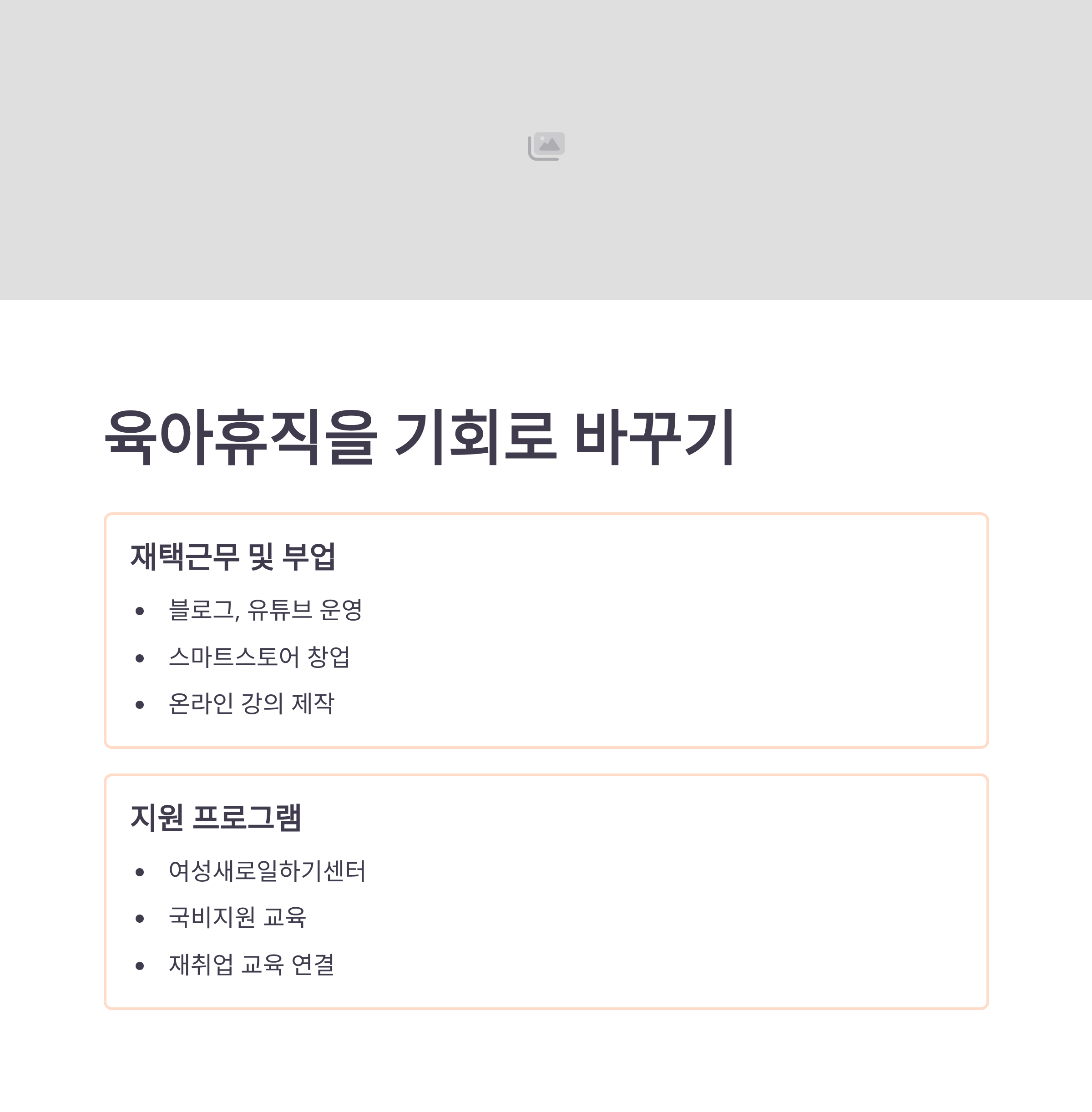 육아휴직이나 경력단절은 재정적 위기이자 성장의 기회입니다.