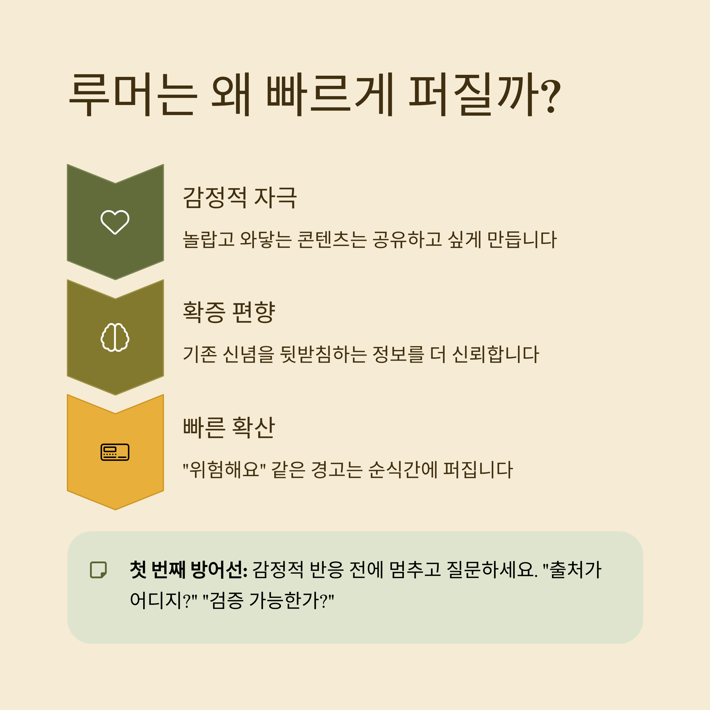 이런 루머에 휘둘리지 않으려면, 감정적으로 반응하기 전에 의식적으로 멈추고 질문하는 습관이 필요합니다. “출처가 어디지?”, “이건 독립적으로 검증 가능한가?”라는 질문이야말로 루머를 걸러내는 첫 번째 방어선입니다.