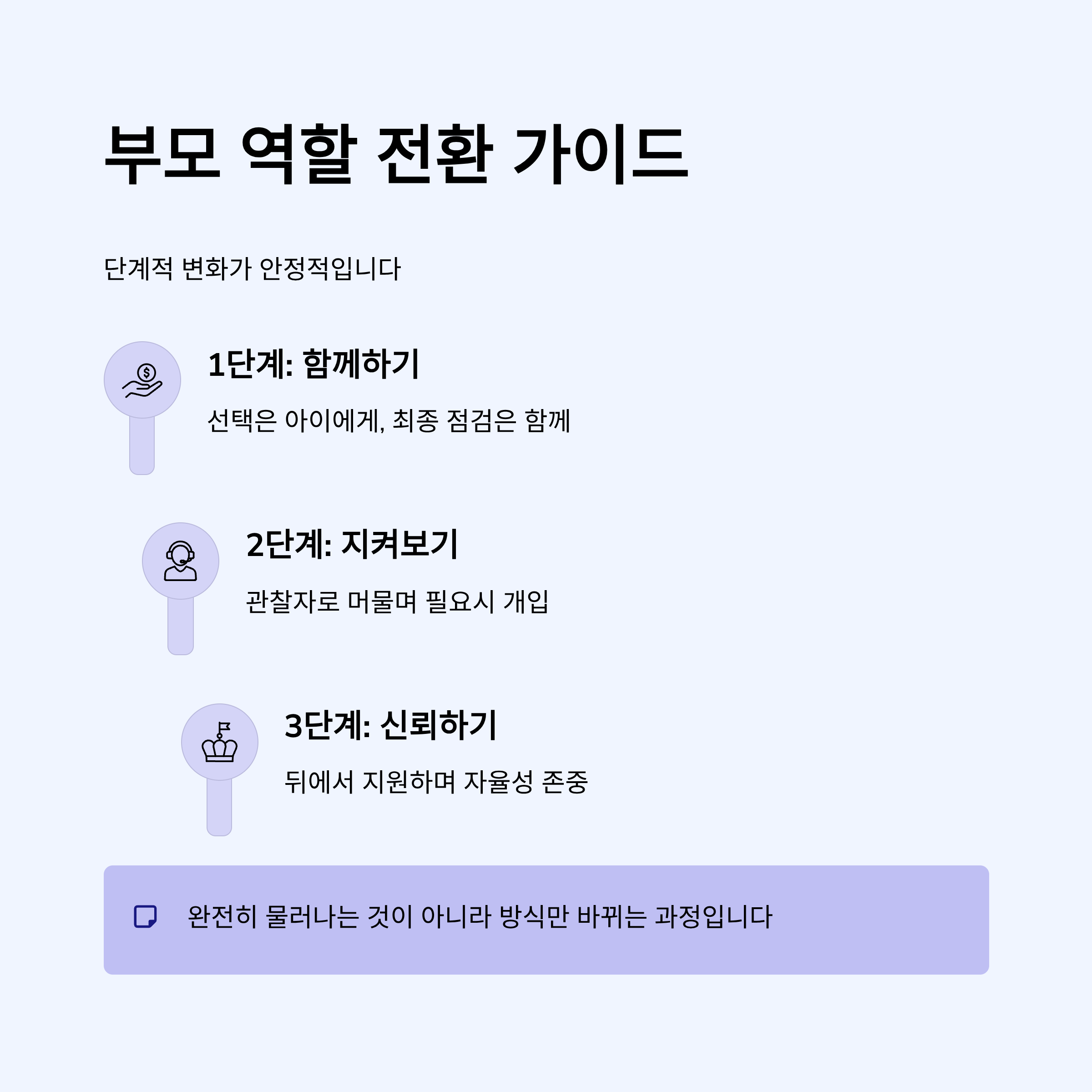이 흐름을 이해하면 부모님의 관여 방식도 부드럽게 전환되고, 아이 역시 간섭이 아닌 지원으로 받아들이며 더 안정적으로 성장 방향을 잡게 됩니다.