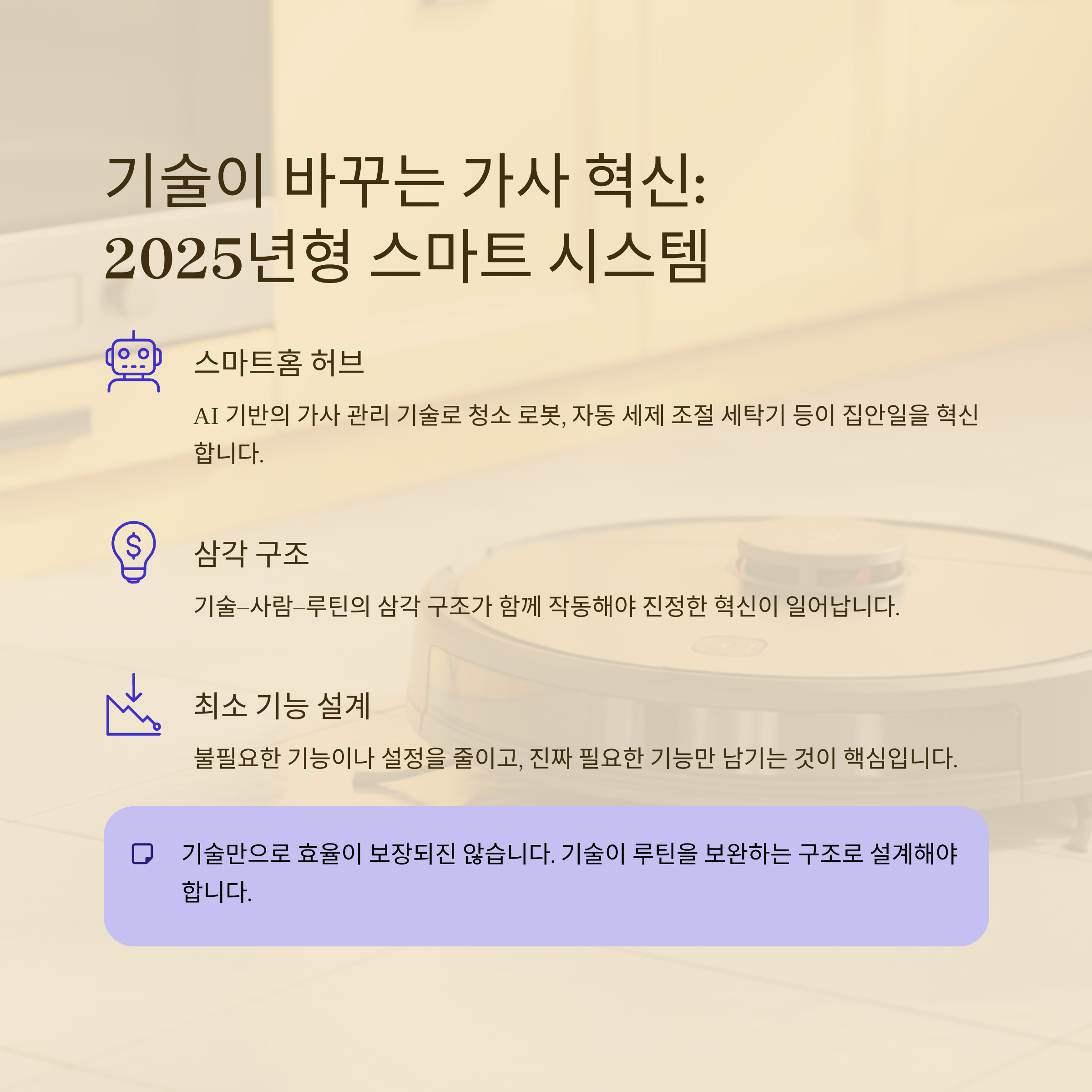 AI와 스마트홈 기술이 발달한 2025년에도 결국 가사 관리의 주체는 ‘사람’입니다.