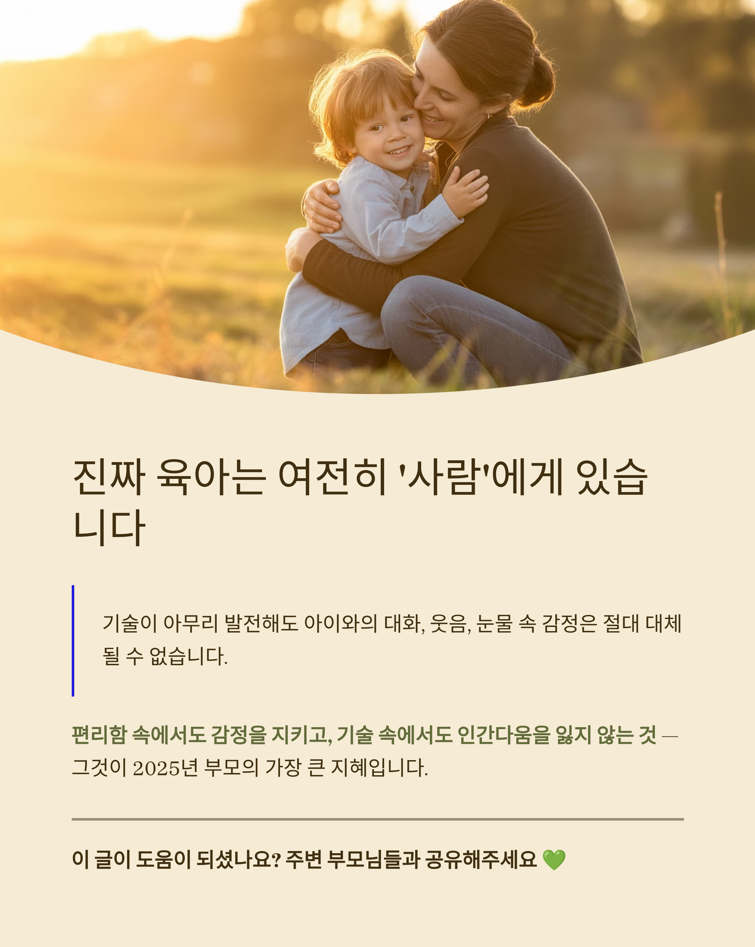 기술은 육아를 돕는 훌륭한 도구이지만, 감정을 대신할 수는 없습니다.